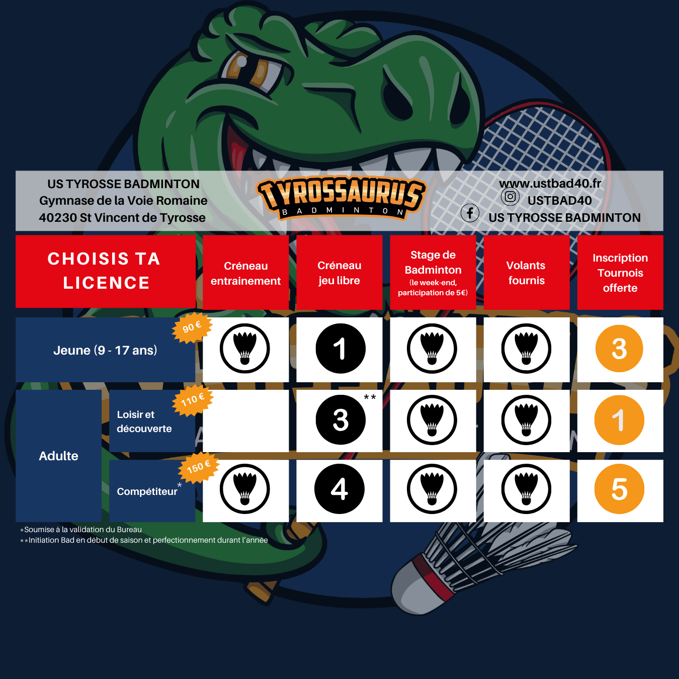 - Permet de recevoir votre licence de badminton pour la saison demandée.